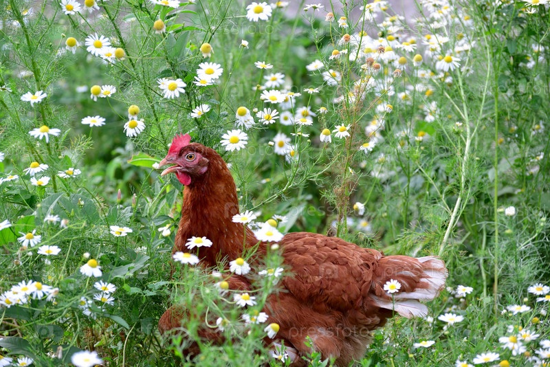 Красная курица в ромашках