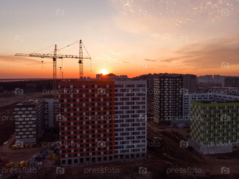 Жилые дома в стадии строительства на закате
