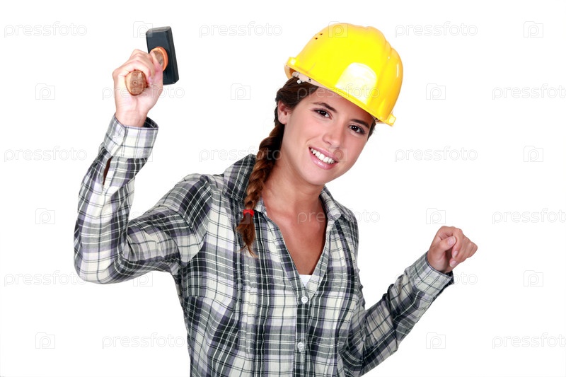 Счастливая работница с молотком