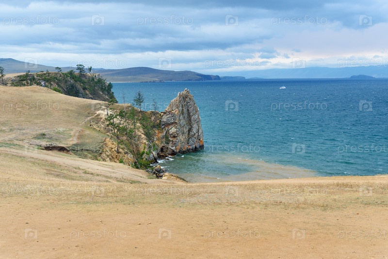 Вид на побережье и скалы. Озеро Байкал. Остров Ольхон. Россия