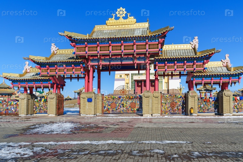 Ворота в буддийский комплексе Золотой обители Будды Шакьямуни. Элиста. Россия