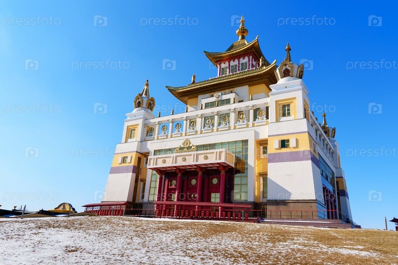 Буддийский комплекс Золотая обитель Будды Шакьямуни весной. Элиста. Россия