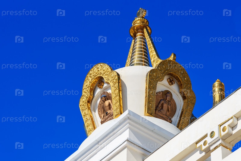 Элемент храма в буддийском комплексе Золотой обители Будды Шакьямуни весной. Элиста. Россия
