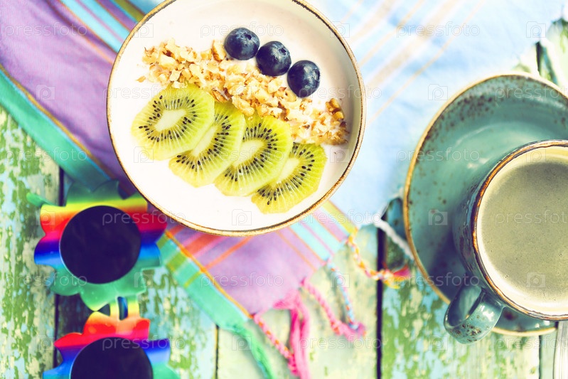 Чашка гранолы с йогуртом и фруктами