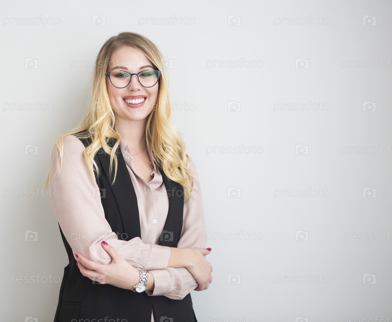 Молодая блондинка, улыбающаяся женщина в очках