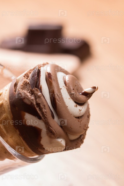 Мороженое и кусочки темного шоколада