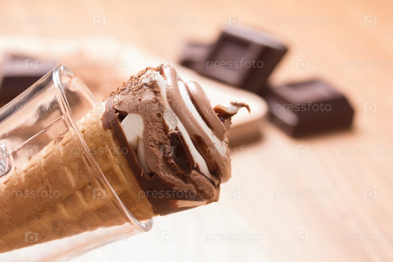 Мороженое и кусочки темного шоколада