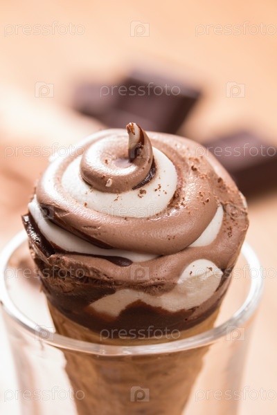 Мороженое и кусочки темного шоколада