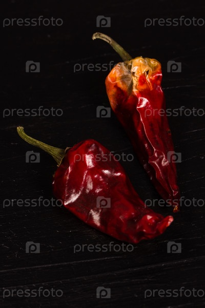 Красные сухие перцы на сером фоне