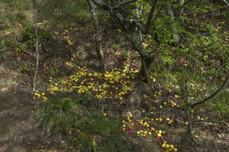 Дикие яблоки на земле