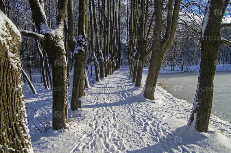 Москва, санаторий Узкое. Аллея на дамбе, разделяющей два пруда