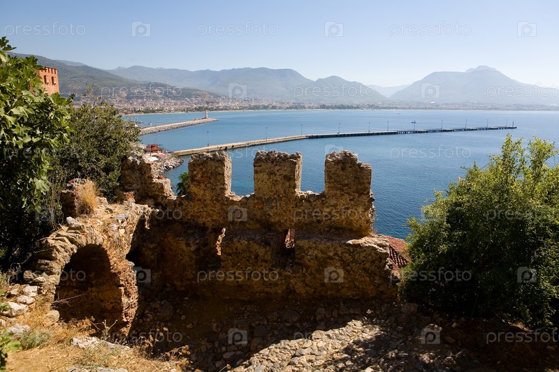 Руины старой крепости на фоне Средиземного моря