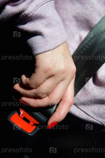 Рука женщины с красивым маникюром крепит ремень безопасности