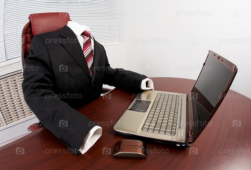 Изображение элегантного костюма без кого-то в нем с ноутбуком рядом