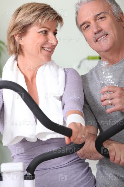 Пожилая пара занимается спортом