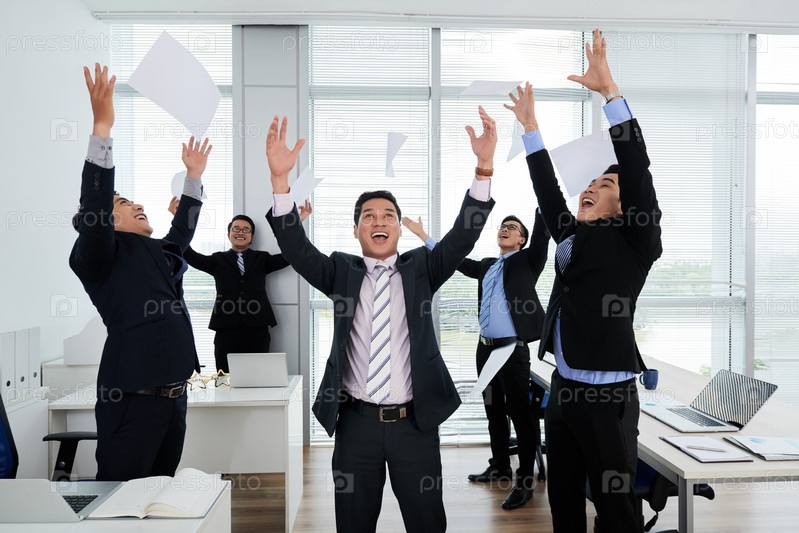 Азиатские коллеги празднуют успех