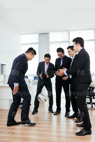 Азиатские менеджеры играют в офисе
