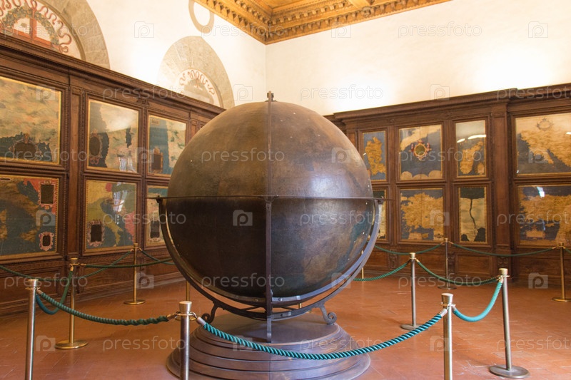 Маппа Мунди в зале географических карт в Палаццо Веккьо, Флоренция, Тоскана, Италия