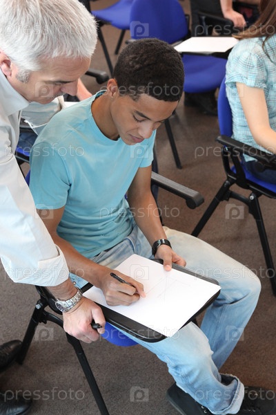 Молодой мужчина на занятии с учителем
