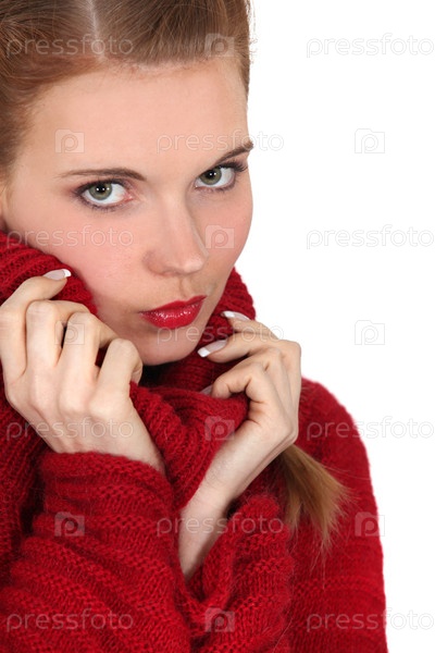Красивая женщина в шерстяном свитере