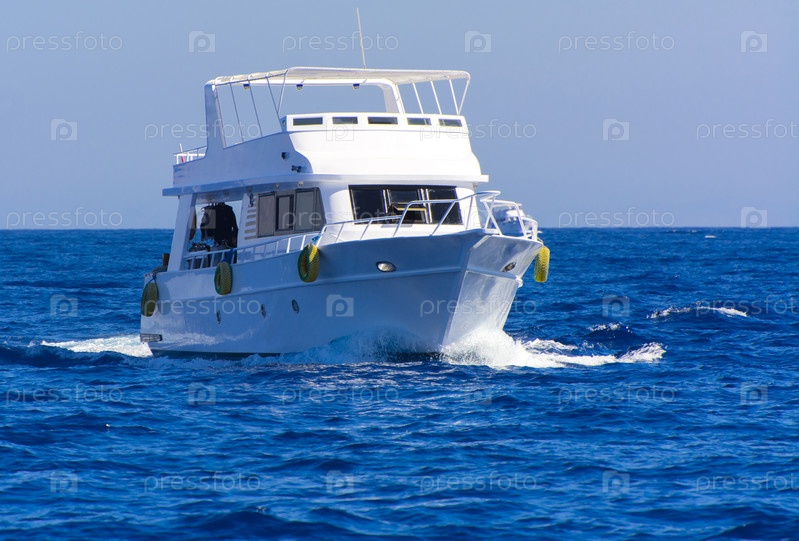 Великолепная белая моторная яхта в Красном море