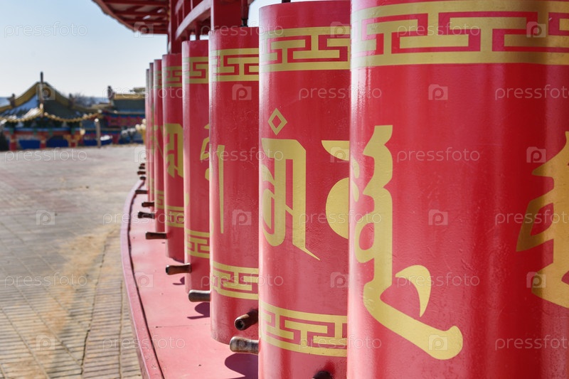 Молитвенные колеса в буддийском комплексе Золотой обители Будды Шакьямуни. Элиста. Россия