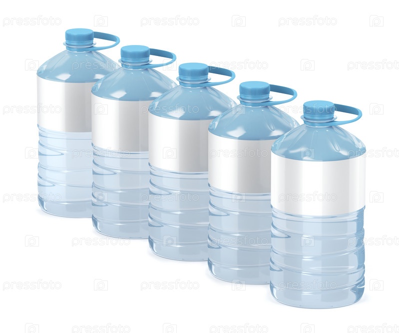 Большие бутылки с водой на белом