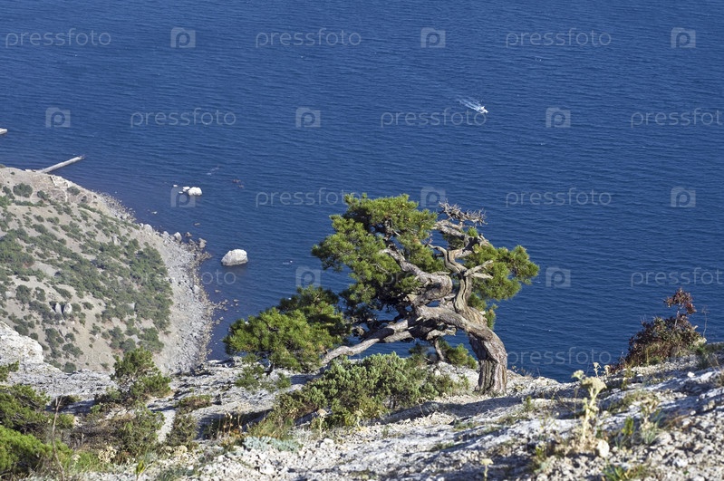 Сосна на скале над морем