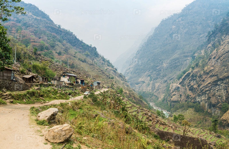 Туристы на горной дороге в Гималаях
