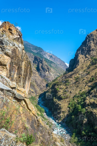 Горный пейзаж с глубоким ущельем в Гималаях