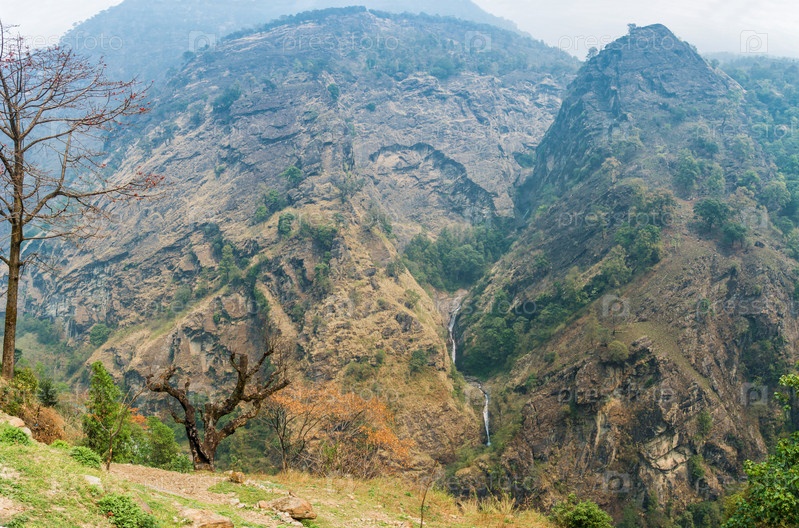 Красивый пейзаж с водопадом в Гималаях
