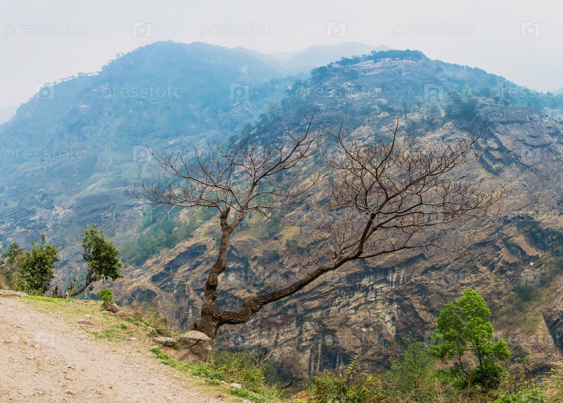 Горный пейзаж с деревьями на переднем плане