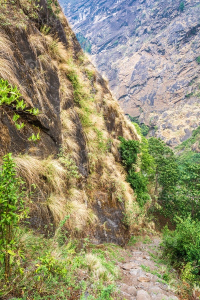 Узкий путь среди высоких скал в Гималаях