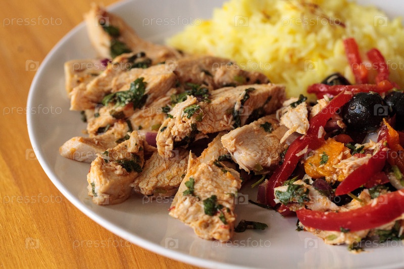 Цыпленок с кинзой, оливками, перцем, чесноком и луком