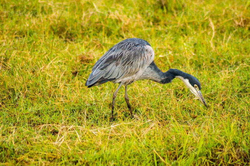 Серая цапля в саванне Найроби парк в Кении