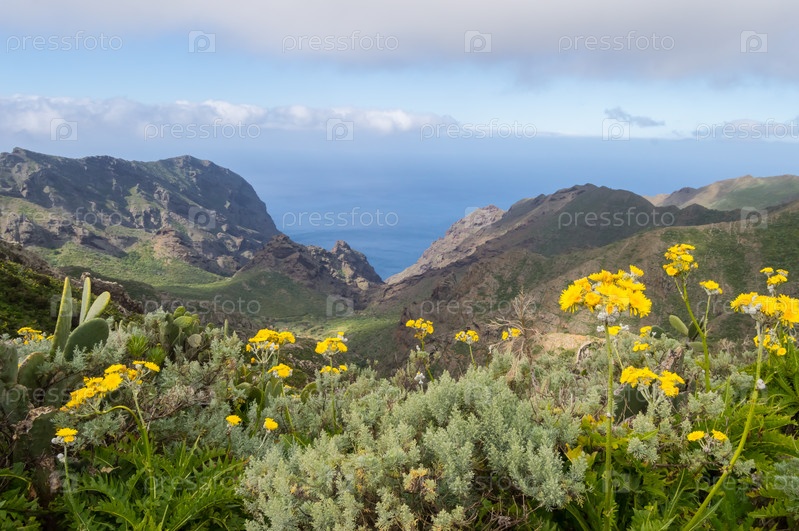 Вид долины и горы с цветами