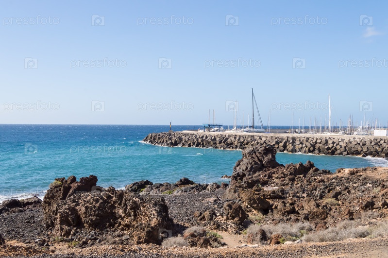 Вид на побережье и гавань Лос-Абригос на юго-востоке острова Тенерифе в Испании