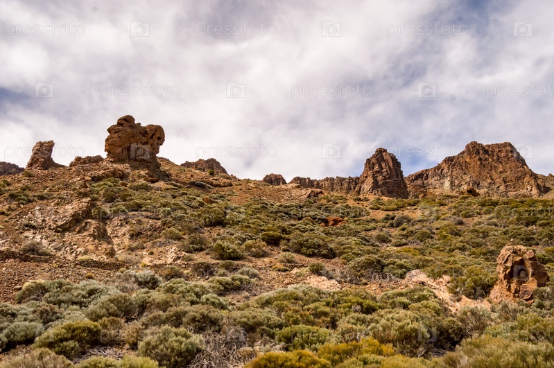 Вид на зеленые Скалы Лос Асулехос в Тейде