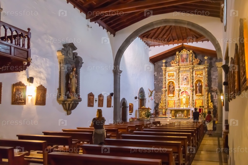 Интерьер церкви Сан-Педро-Апостол на острове Тенерифе в Испании