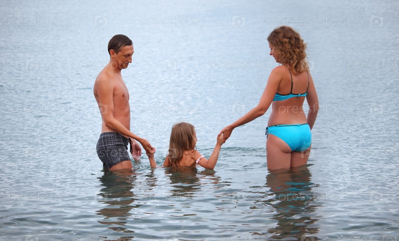 Счастливое семейство с дочкой на море