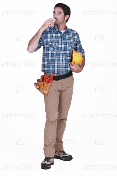 Строительный рабочий с чашечкой кофе