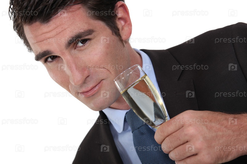 Бизнесмен пьет шампанское