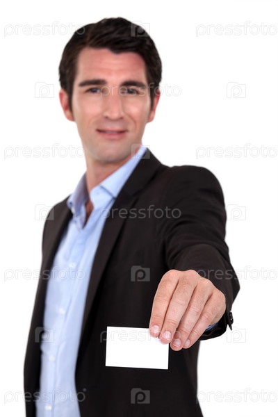 Уверенный бизнесмен показывает визитную карточку