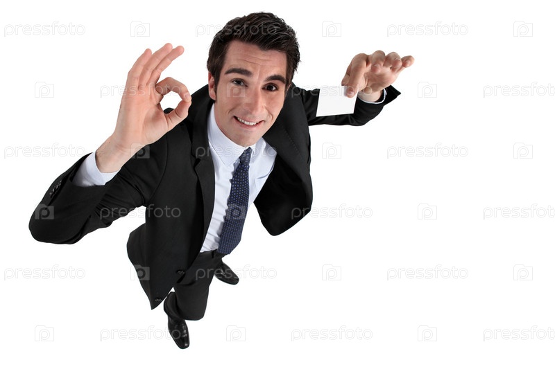 Бизнесмен показывает визитную карточку