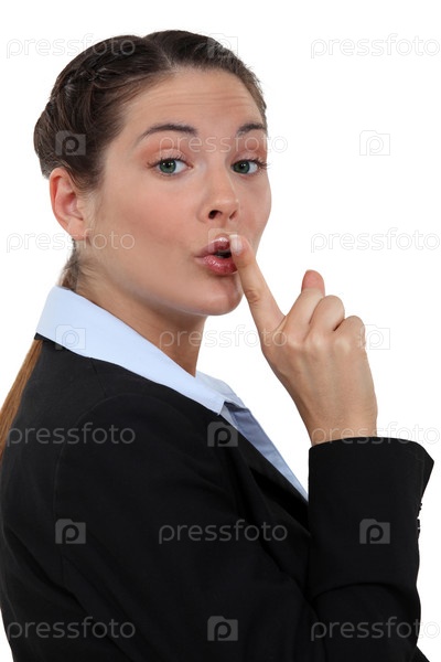 Деловая женщина, приложившая палец к губам