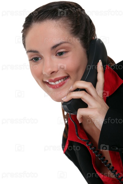 Брюнетка использует стационарный телефон