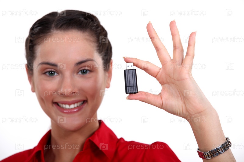 Брюнетка держит USB-карту