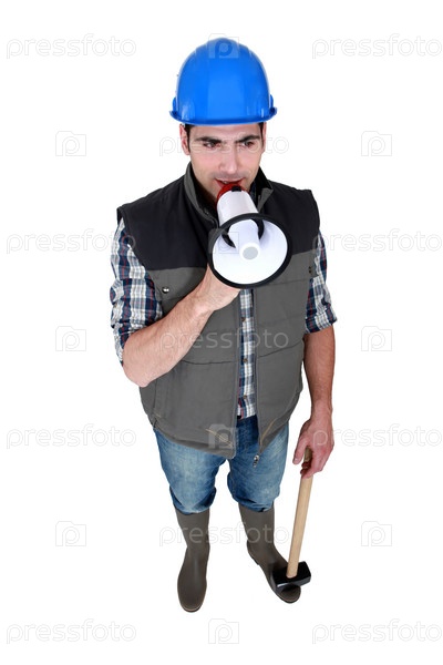 Строитель говорит через мегафон