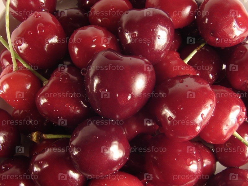 Спелая мытая черешня крупным планом