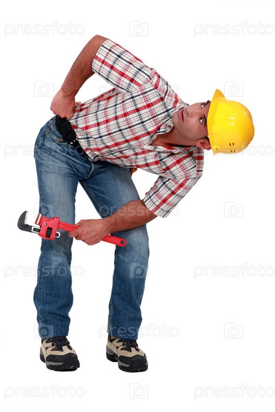 Водопроводчик заглядывает под что-то